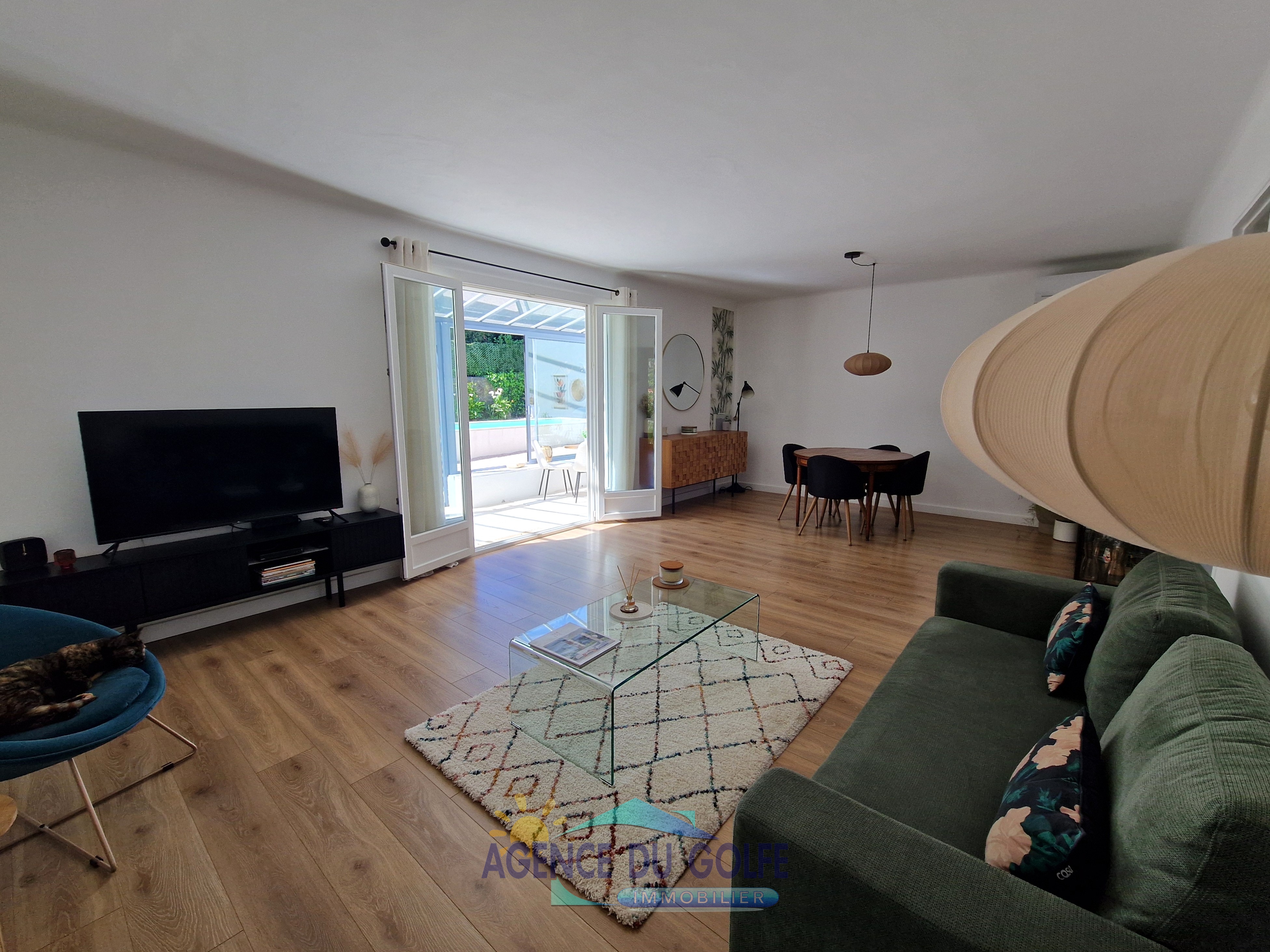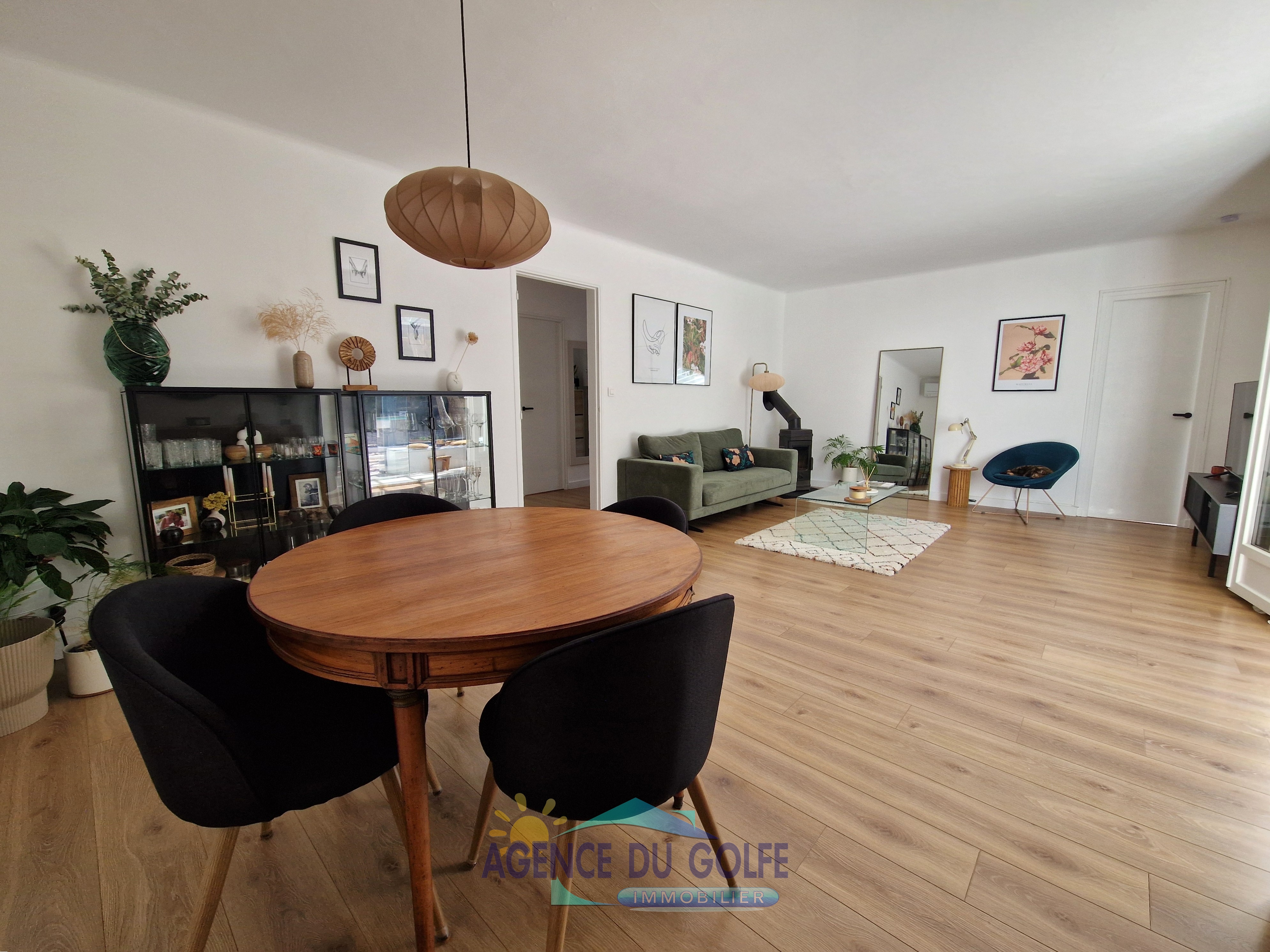 Dès l'entrée, vous serez séduit par une pièce de vie spacieuse baignée de lumière grâce à son excellente exposition, offrant un espace convivial ouvert sur une belle véranda et sur l'extérieur.